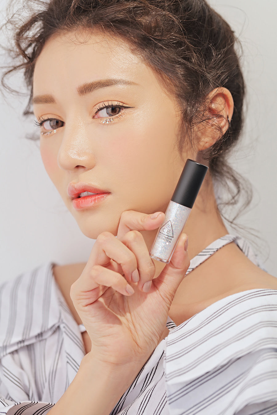 - Dispense a small amount, then gently apply around eyes to add sparkle.
