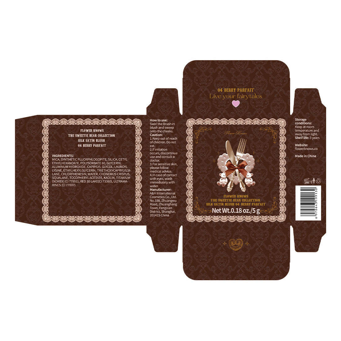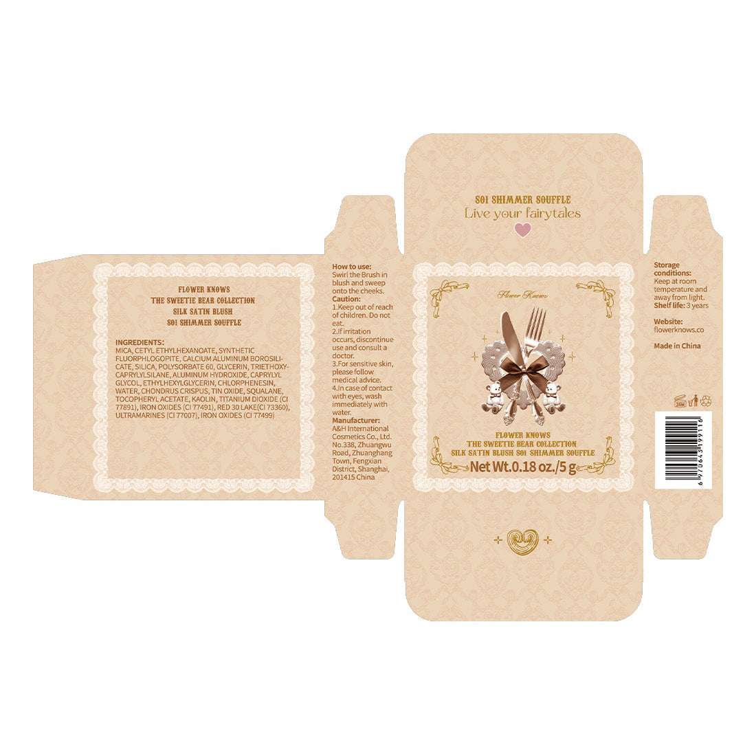 Flower Knows The Sweetie Bear Collection Silk Satin Blush
