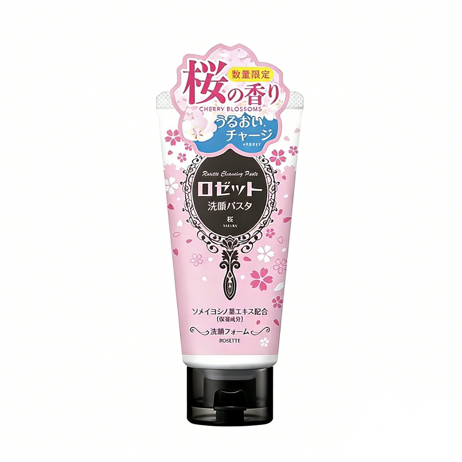 To complement the scent, the packaging features a special limited edition design: set against a soft pink base, the iconic “hand mirror” motif from the Rosette Facial Wash Paste Clay Series is surrounded by countless cherry blossom petals, inspired by falling sakura snow.